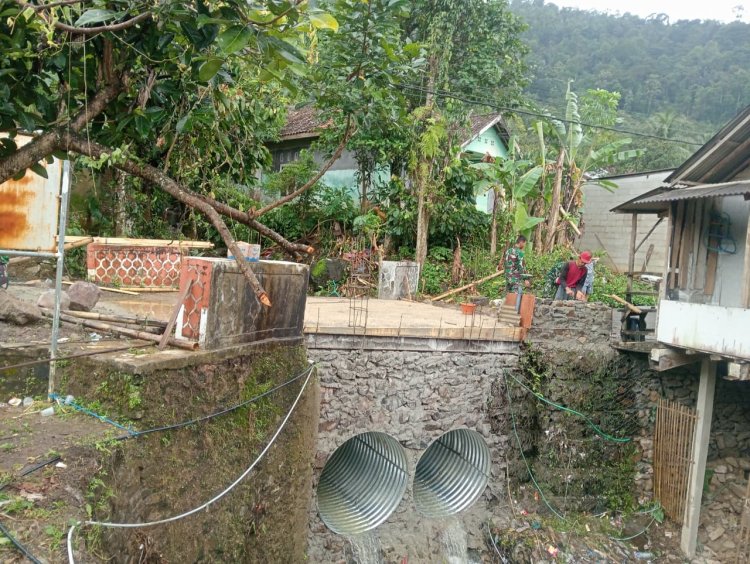 Babinsa Koramil 0105/Mandalawangi Laksanakan Monitoring Pembangunan Jembatan ARMCO di Desa Ramea