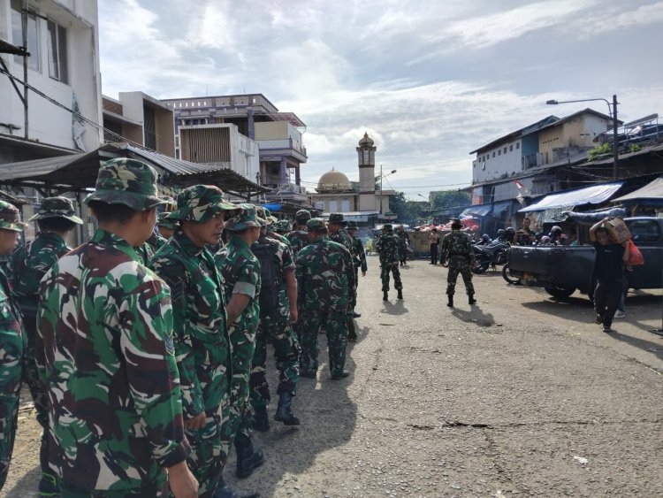 Dalam Rangka Hari Juang TNI AD Ke- 80, Kodim 0601/Pandeglang Gelar Apel Kesiapan Karya Bakti Bersama Saka Wira Kartika di Pasar Berkah Pandeglang