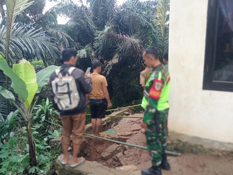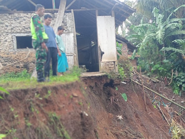 Danramil dan Babinsa Koramil 0105/Mandalawangi Tinjau Rumah Warga Terdampak Tanah Longsor di Desa Cikumbuen