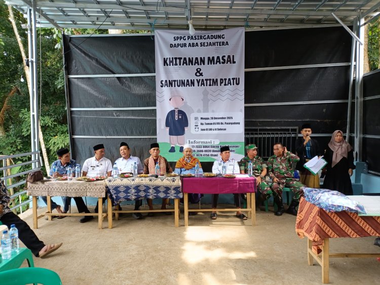 Pandeglang – Anggota Koramil 0111/Pagelaran Kodim 0601/Pandeglang, Serka Dede Suharsono, mewakili Danramil 0111/Pagelaran menghadiri kegiatan khitanan massal dan santunan anak yatim yang diselenggarakan oleh pengelola SPPG Pasirgadung (Dapur ABA Sejahtera). Kegiatan tersebut berlangsung di SPPG Pasirgadung (Dapur ABA Sejahtera), Kampung Taman, Desa Pasirgadung, Kecamatan Patia, Kabupaten Pandeglang, Rabu (31/12/2025)