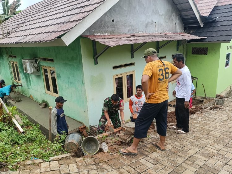 Dalam pelaksanaannya, Babinsa bersama warga terlihat kompak melakukan penggalian tanah, penyusunan batu bata, serta perapihan pondasi di sepanjang sisi jalan yang rawan tergerus air. Semangat kebersamaan dan gotong royong tampak jelas, mencerminkan sinergi yang kuat antara TNI dan masyarakat.