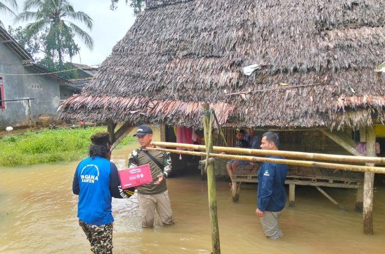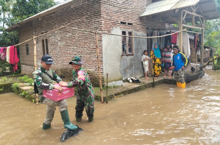 Danramil 0111/Pagelaran Didampingi Babinsa Salurkan Bantuan Banjir di Kampung Pamatang